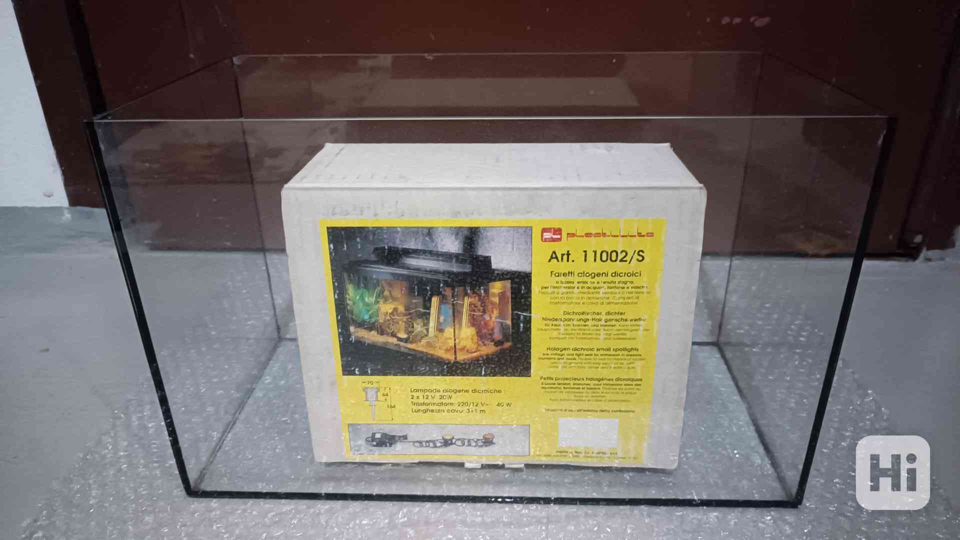 Prodám akvárium široké 40 cm, hluboké 20 cm, vysoké 25 cm; tl. skla 4 mm za 190,- Kč a nové halogenové osvělení 2 x 20 W s barevnými filtry za 190 Kč. Vše za 350 Kč.