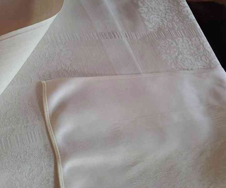 Prodám světle žlutý damaškový ubrus, rozměr cca 166 cm x 134 cm, stav dobrý, cca 60. léta. Cena 180 Kč + poštovné.