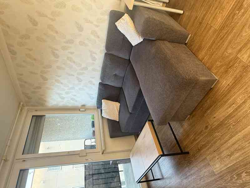 Prodám rozkládací pohovku s lenoškou, tmavě šedý potah.