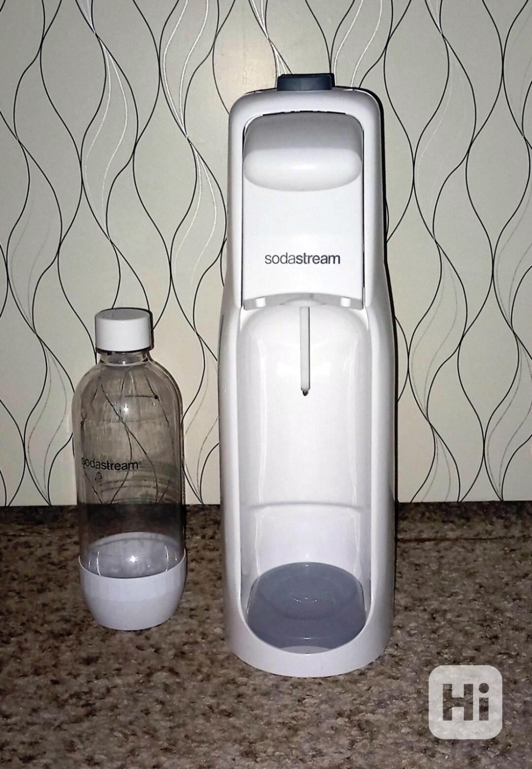 Prodám zánovní, plně funkční výrobník sody SODASTREAM JET bílý s bombičkou CO2 a 1-litrovou lahví. Jednoduchá obsluha, instalace bombičky jednoduchým zašroubováním, volitelné množství bublinek, až 80 l vody na jednu plynovou náplň.