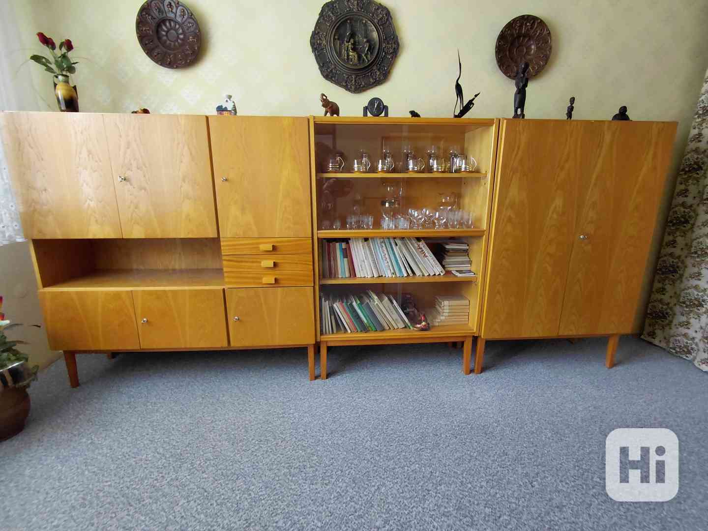 Prodám tuto světlou obývací stěnu 80 léta š335 x v148 x h42,5 bez dekorace + sedací souprava, rozkládací pohovka, stolek a dvě křesla vše jak je na fotu. Nábytek je z nekuřáckého a čistého prostředí. K osobnímu odběru v Hustopeči u Brna.