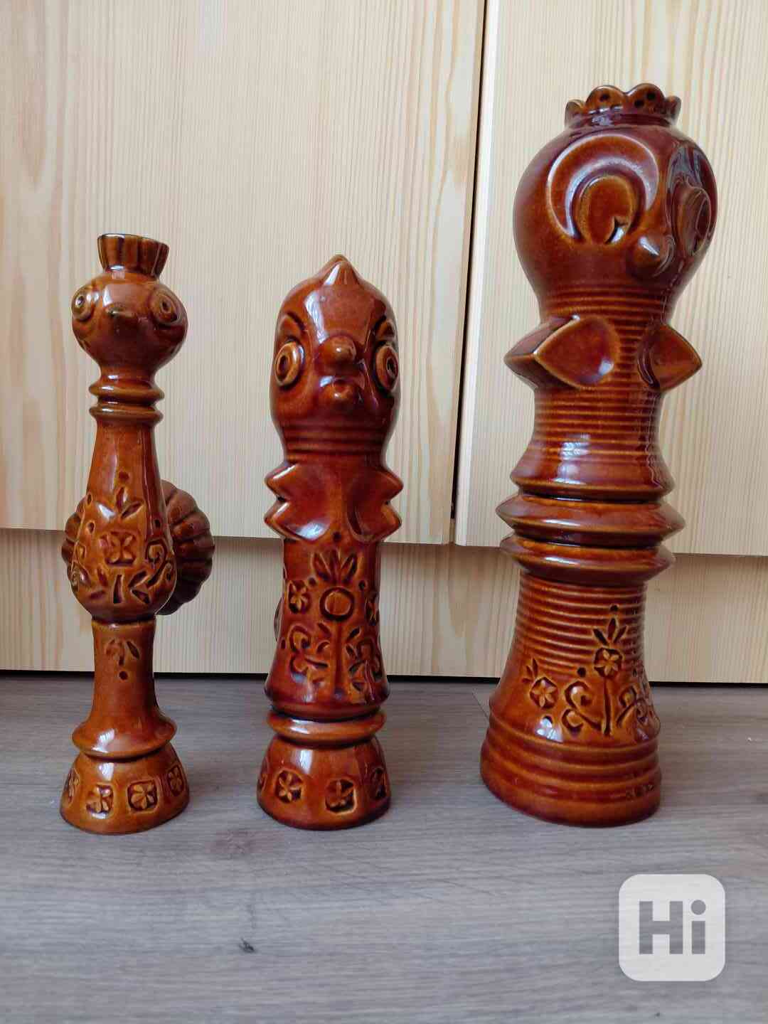 Prodám dekorativní retro keramiku KERAMIA - KRAVSKO tři sošky prodám jako celek, soška kohouta má lepenou nohu viz. foto.