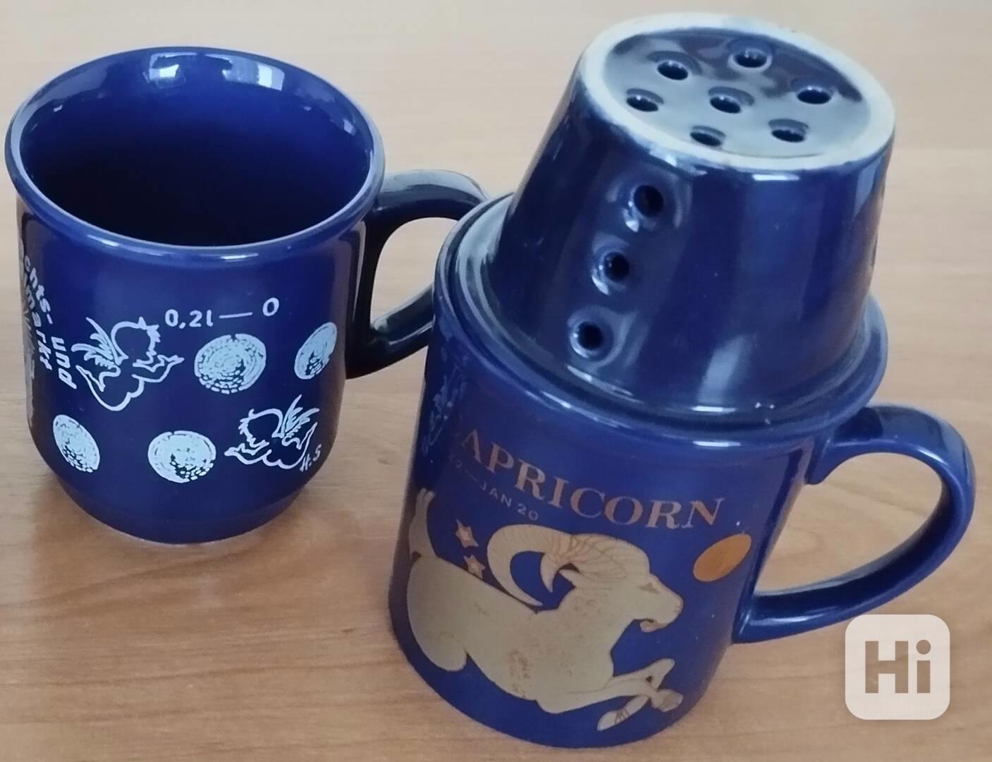 Hrnky znamení Capricornius (Kozoroh) vč. odkapávače a vánoční trh Christlkindlmarkt Linz.