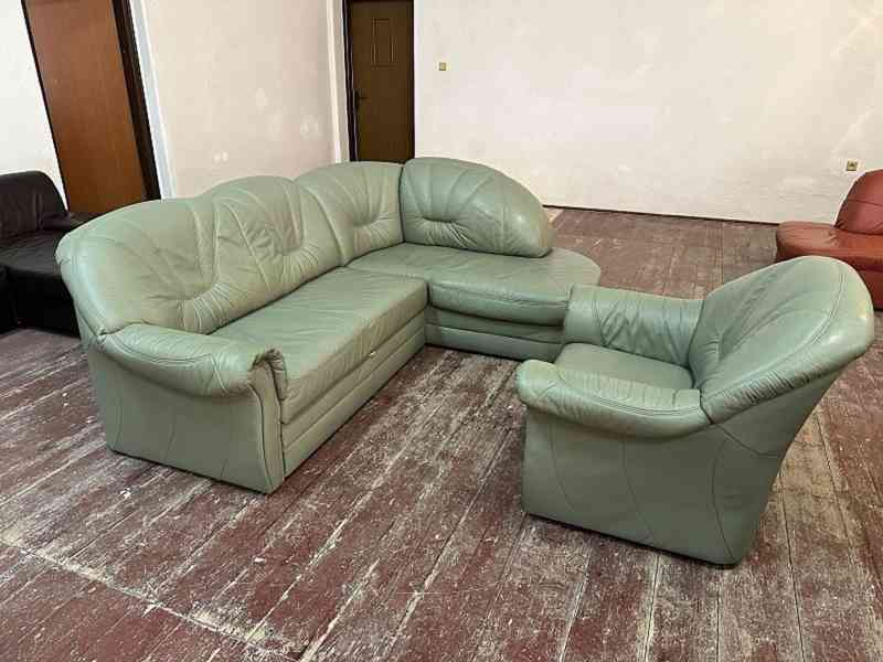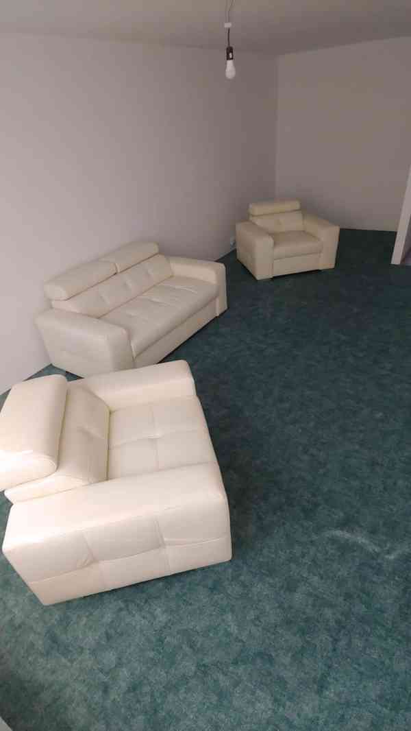 Sedací souprava + křeslo, ne rozkládací, jako nová za čtvrtinovou cenu.Pravá velice kvalitní kůže. Nepoškozená.nevysezená. Pevná.vyšší sed i opěradlo. Rozložitelná na 3 ks cena 23800.-kc