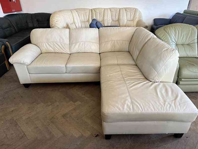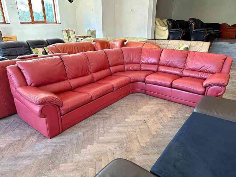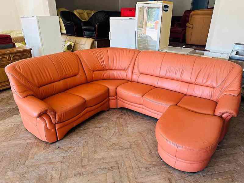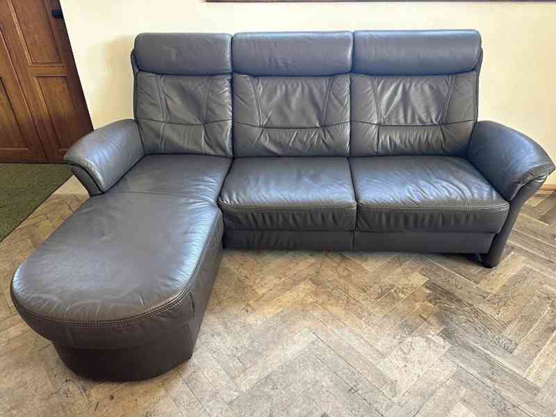Prodám koženou sedací soupravu, tmavě hnědá, rozměry 200 x 263 cm, výška sedu 40 cm, 2 nastavitelné a odnímatelné hlavové opěrky, nohy chrom. U kratšího dílu sedací soupavy je i zadní část potažena kůží pro možnost umístění do prostoru. Výroba SRN.
