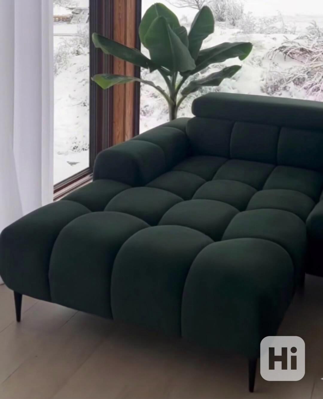 Prodám úplně novou, nepoužitou rohovou sedací soupravu Plaza Mini v elegantní tmavě zelené barvě (potah č. 39) s černými kovovými nožkami. Sedačka je v levém provedení.