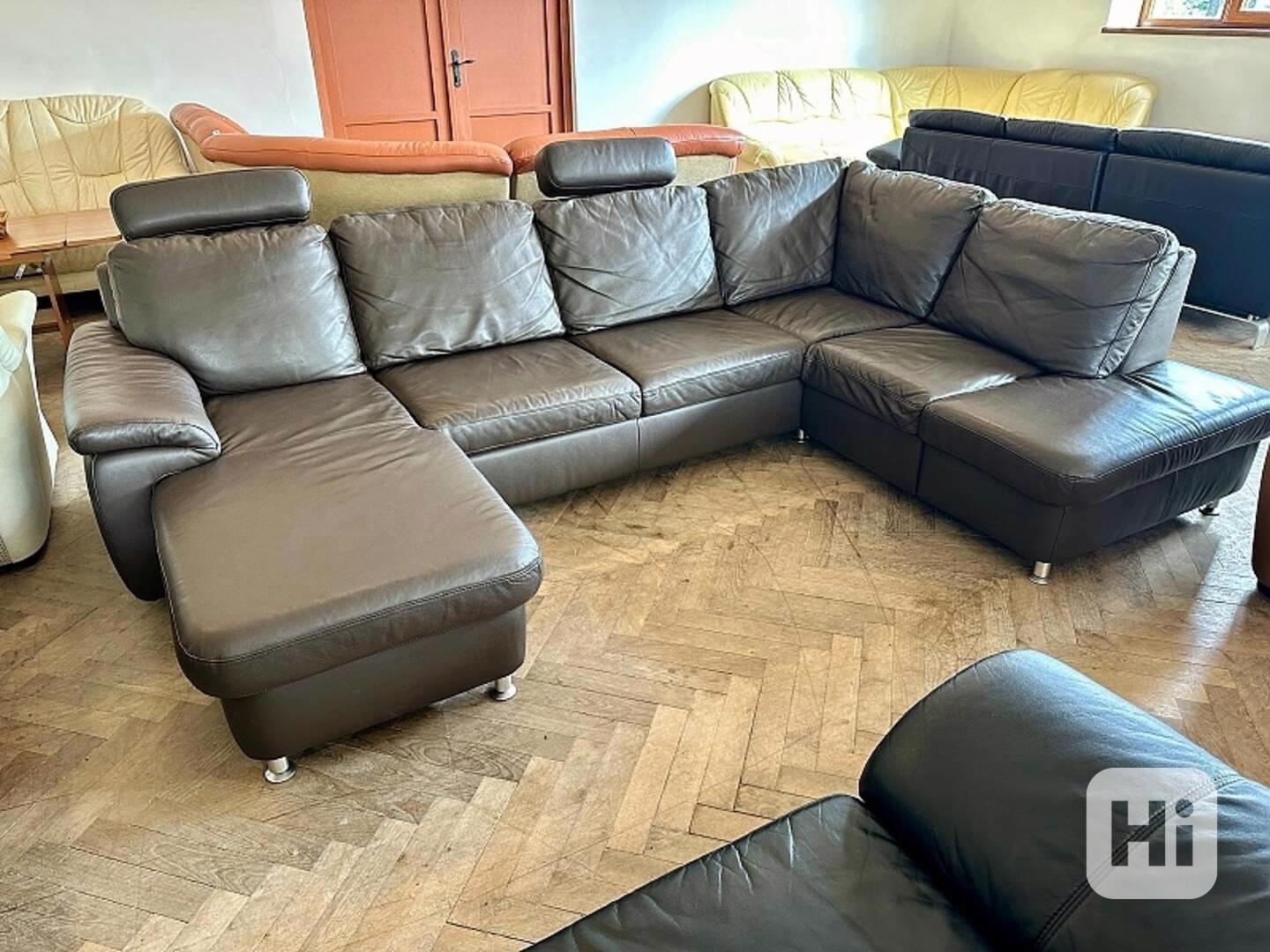 293 Kožená rohová sedací souprava sedačka tvar U rozkládací