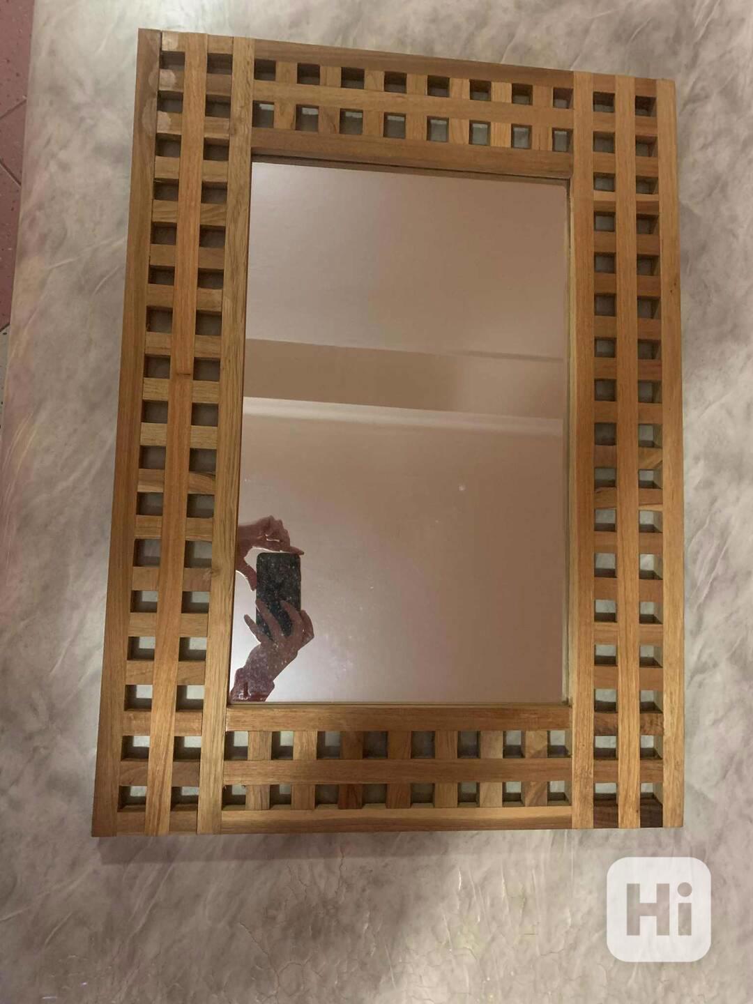 Prodám nástěnné zrcadlo v dřevěném rámu s mřížkovaným dekorem, používané v masážním salónu. Rám je z masivu (přírodní odstín), zrcadlo bez prasklin, drobné známky používání a lehké oděrky na dřevě, viz detailní fotky. Vhodné do předsíně, koupelny, salónu nebo ložnice jako dekorativní prvek.